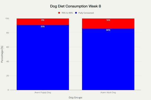 - Only 14% consumed between 76% and 99%, highlighting its superior acceptance among adult dogs.